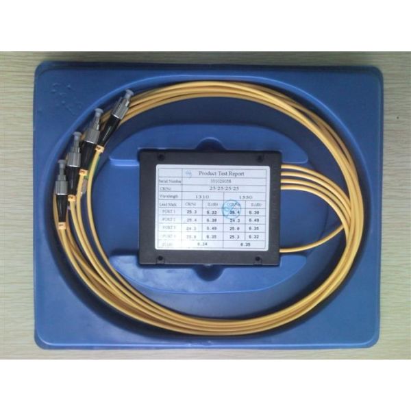 Low excess loss and low PDL 1 * 4 FBT optical fiber splitter cable 0.25, 0.9mm